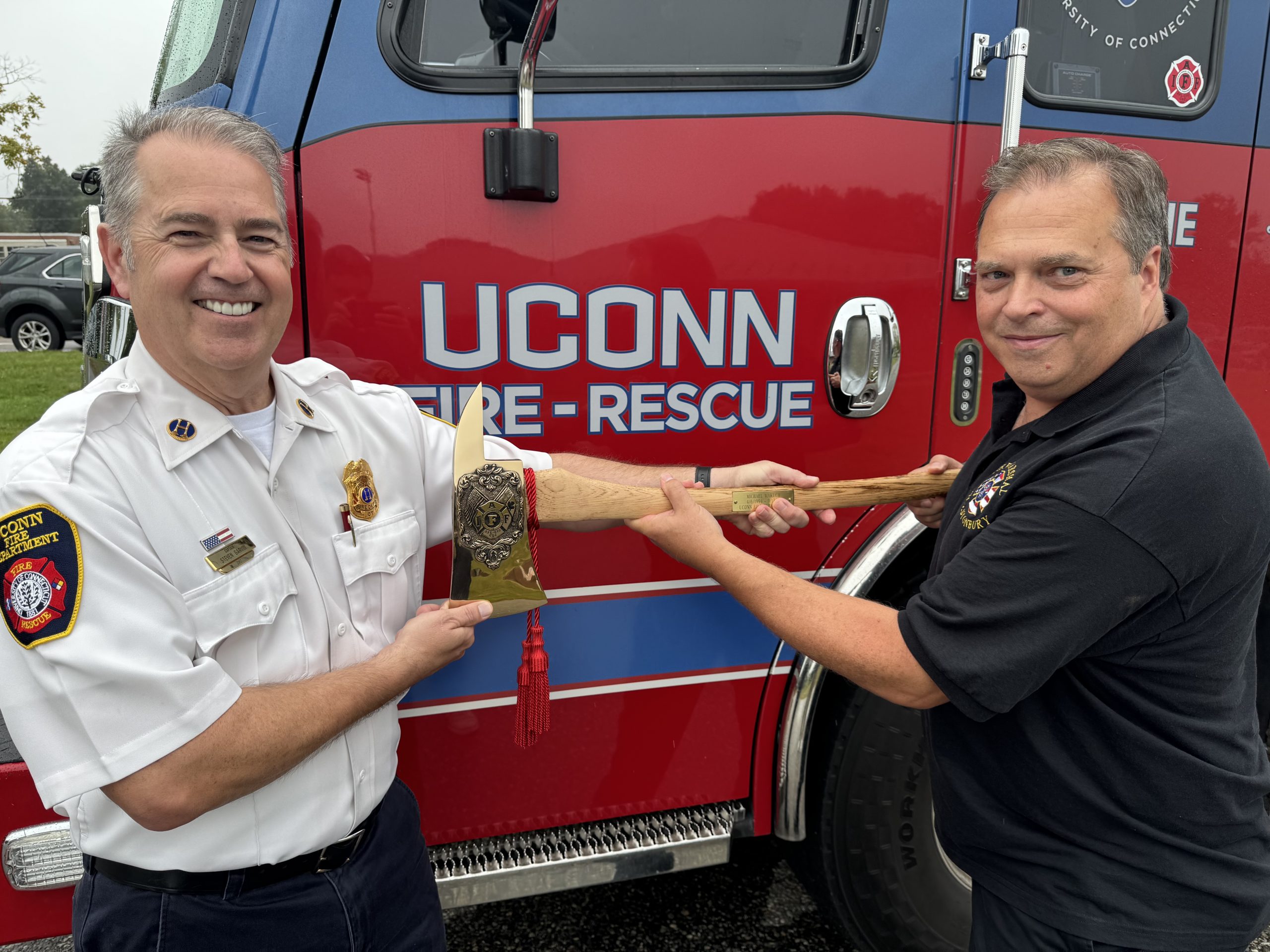 The event also served as a reunion of three UConn police chiefs – current chief and Associate Vice President for University Safety Gene Labonte; former chief and Associate Vice President of Public Safety Hans Rynhart; and former chief Bob Hudd, who oversaw the creation of the UConn Fire Marshal Office during his tenure.